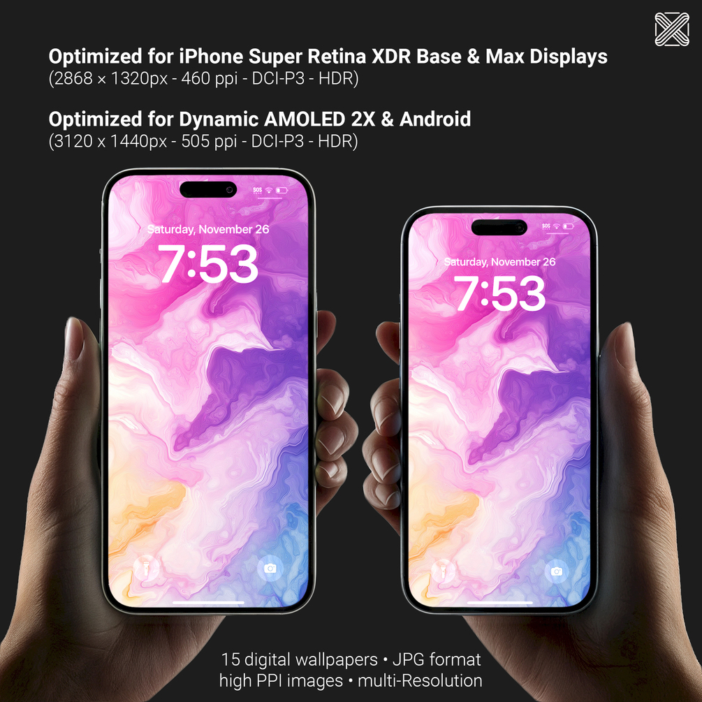 • 15 JPEGs in 9:19.5 aspect ratio – perfect for the latest iOS smartphones